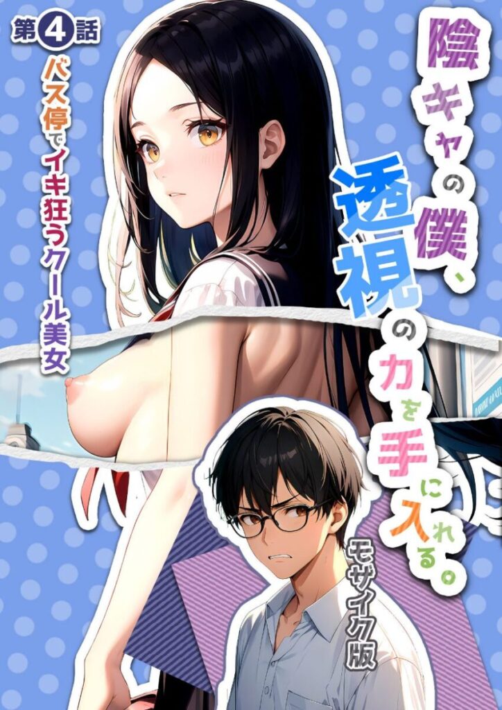 ある日突然手に入れた透視能力。この不思議な能力は、服の下を透視出来るだけでなく、おまけに遠隔で好きなものを自由に触れるらしい。この力を使えば、誰にも知られずいろんなことができる…!(どんどん激しくなって……)「おまた ずんずんやだぁ…っ」(やだ…上も下も同時とか…)「もうやだぁ…またっイッちゃうぅ…!」(こんなの…声出ちゃう…)「あぁぁぁぁっ!」やっぱり人知れず好き勝手出来るのは快感すぎる。さあ、この最凶な能力でこの学園の彼女達を全員堕としてやろう――■収録作品陰キャの僕、透視の力を手に入れる。第四話 〜バス停でイキ狂うクール美女〜 モザイク版陰キャの僕、透視の力を手に入れる。第五話 〜小悪魔ギャルを快楽支配〜 モザイク版陰キャの僕、透視の力を手に入れる。第六話 〜巨乳な図書委員の隠し切れない喘ぎ声〜モザイク版【注意事項】※本作品のシチュエーションは全てフィクションです。登場する人物や設定等は、すべて架空のものとなります。※この作品内に登場するキャラクターは全員20歳以上です。※本作品はAIによる生成画像を使用して制作しております。※犯罪、その他違法行為を美化または助長する意図はございません。