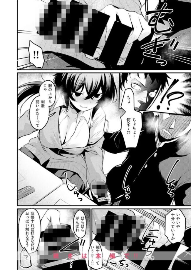 となりの席の眉村(まゆむら)さんは《痴女》だ。「ね ノリくん 勃起ゲームしよう」授業中に突然始まったのは――筆おろしを賭けた《勃起したら負け》ゲーム!?乳首チラとおっぱいタッチで即敗北した僕に、次は眉村さんが《射精したら負け》へとルールの変更提案。それでも呆気なく手コキで射精しちゃったけど、この日から度々スリリングなこのゲームに興じることになった……。負け続けたある日、お互いに手マンと手コキをして《先にイッたら負け》の新ルールを提案してきた眉村さん。このチャンスに死力を尽くし、ついに眉村さんを先にイかせることに成功!! ――ってことは、念願の筆おろし!?