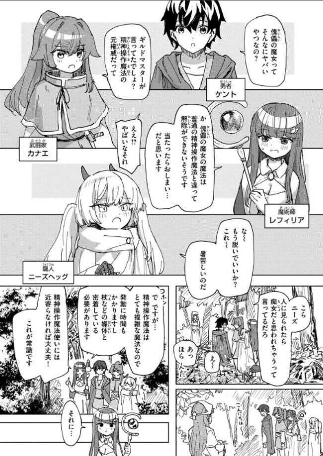 「傀儡の魔女が潜伏している可能性があるのはこの辺りか…」異世界転生スキルを持つ勇者と美女揃いのパーティが《精神操作魔法》を極めた魔女の討伐に挑む……!そして――「それなら私に考えがあります」「まずはケント様のおちんぽを私のま○こに入れるんです」……!?「何言ってんの!?私のま○この方がいいでしょ!?」…………!!?魔女の領域に踏み込んだら最後……名手・角煮煮が《常識改変》ジャンルの新たな可能性を追及する新シリーズ・第2話。