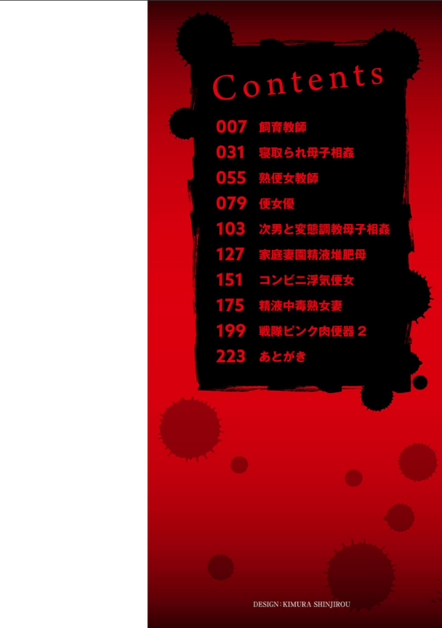 「トイレならここにありますよ」禁親相姦、性器拡張、奴●調教etc…究極の変態道を極める作者の最新作!!《収録作品》飼育教師寝取られ母子相姦熟便女教師便女優次男と変態調教母子相姦家庭妻園精液堆肥母コンビニ浮気便女精液中毒熟女妻戦隊ピンク肉便器2あとがき※電子書籍化にあたり、底本とは一部収録内容が異なる場合がございます。