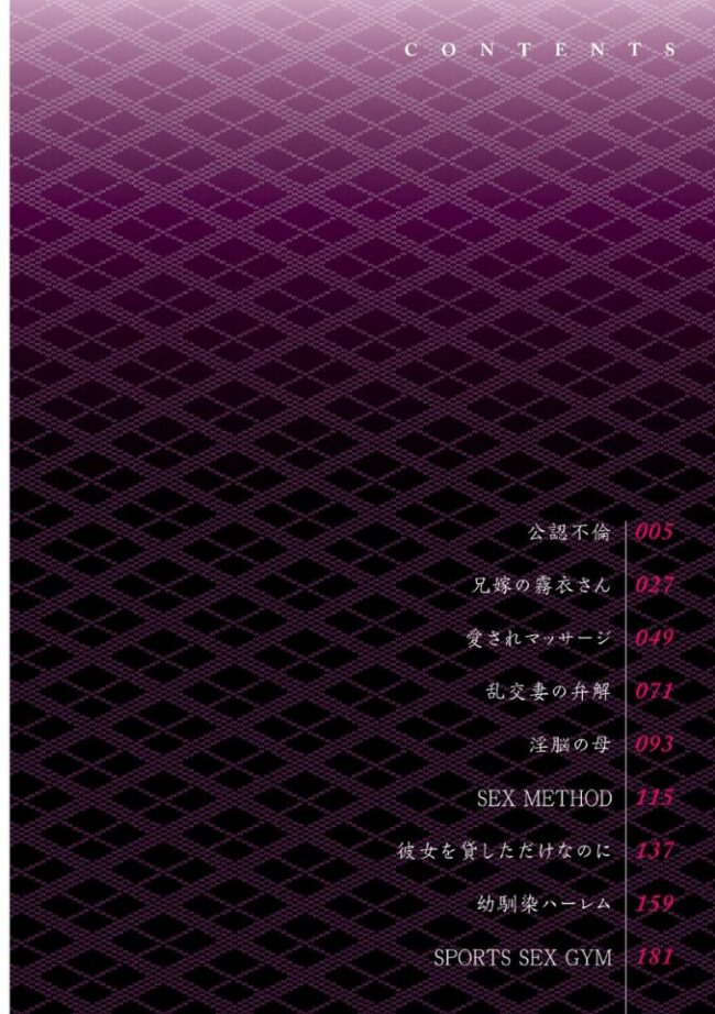 背徳的なエロスを独自の切り口で描く実力派作家≪こうきくう≫による寝取らせにこだわった作品集が満を持して完成!! 始めは仕方なく結んだ身体の関係だったはずが深みに溺れていく哀れな女たちを描いた9編を収録。欲求不満の熟女や隙だらけの人妻、甘えん坊な彼女が、不義理なSEXによる未知の快楽によがって淫靡に堕ちていく!!【収録作品】公認不倫淫悩の母SPORTS SEX GYM愛されマッサージ兄嫁の霧衣さん幼馴染ハーレム乱交妻の弁解彼女を貸しただけなのにSEX METHOD