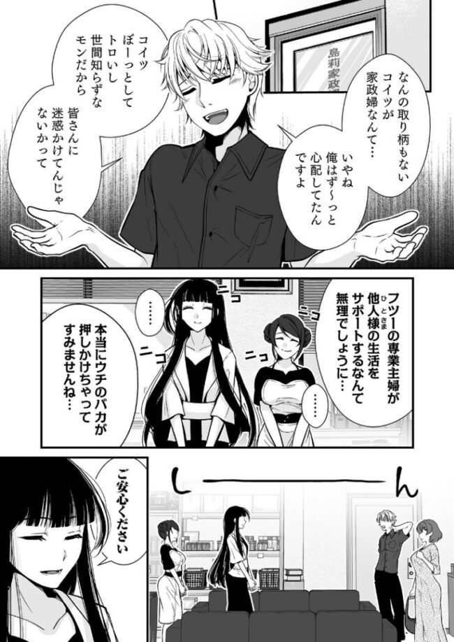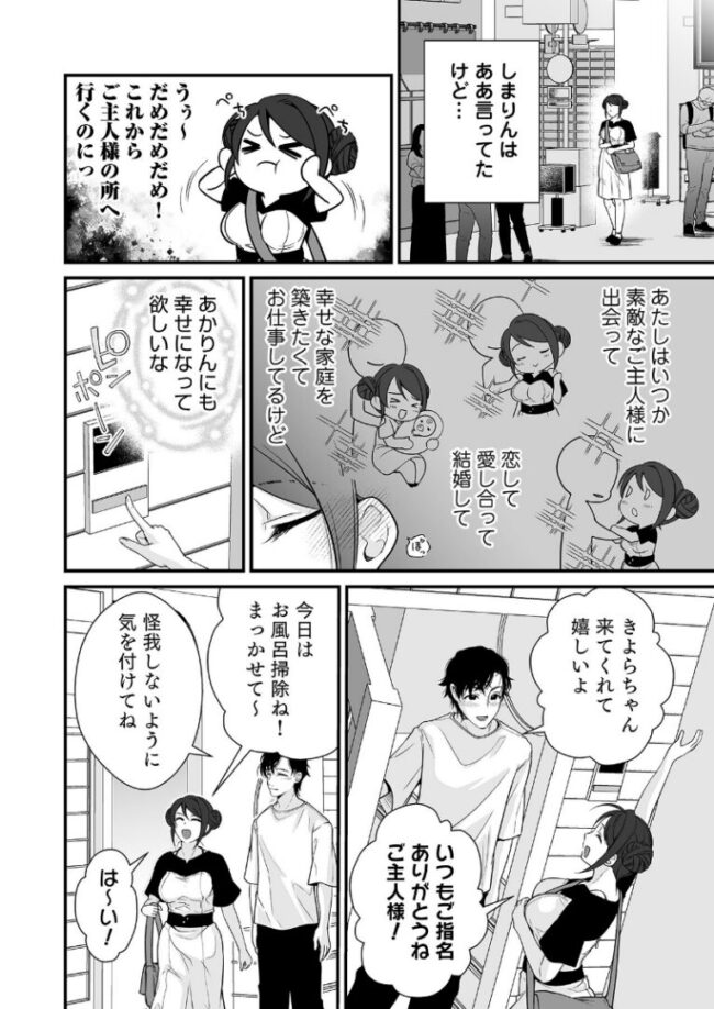 夫のために専業主婦になるも「世間知らず」と罵られ、唯一誇れる特技の家事で島莉家政婦事務所に応募した春由あかり。即採用、即勤務で渡されたマニュアルの「家性婦」…?あれ、こんな字だったっけ?料理や掃除、自分の仕事で笑顔になってもらえることに幸せを感じながらも、夫から必要とされないことに落ち込んでいると、お客様から優しく身体を愛撫されて…!?