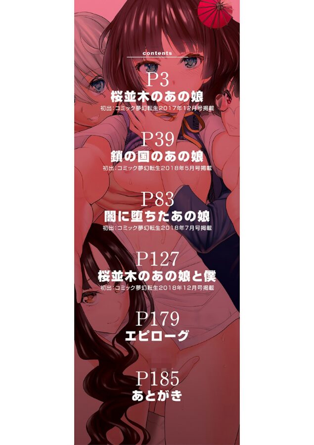 僕の精液を狙って学園中の女子が争奪戦!!女生徒がみんな催淫状態に!?男子学生のケイスケの精液には特別な魔力があった!!そんな魔精液を求めて異世界から淫魔や鬼娘が押し寄せる!!彼女達の目的は、ケイスケを逆レ●プして精液を搾り取る事だ!!だがケイスケ本人も知らなかったが、彼の精力は無尽蔵!!淫魔アイリスさえも連続射精で完堕ちしてしまう!!さらに精液の魔力のせいで、アイリスの淫魔法が学園中に伝染!!学園中の女生徒が催淫状態に!!女生徒たちは愛液を垂れ流しながら、肉棒を求めてケイスケに襲い掛かる!!超絶美麗な作画!!エモく読ませるストーリー!!大型新人・新羽隆秀の初単行本!!描き下ろしエピローグ収録!!更に電子書籍専用特典も封入!![電子書籍の特典]紙書籍発売時の店舗配布用イラスト1点カバー表1イラスト(トリミング無し)カバー表4イラスト(トリミング無し)単行本初収録!ピンナップ用イラスト(初出:コミック夢幻転生2018年3月号)[収録作品]1 桜並木のあの娘2 鎖の国のあの娘3 闇に堕ちたあの娘4 桜並木のあの娘と僕5 エピローグ6 あとがき