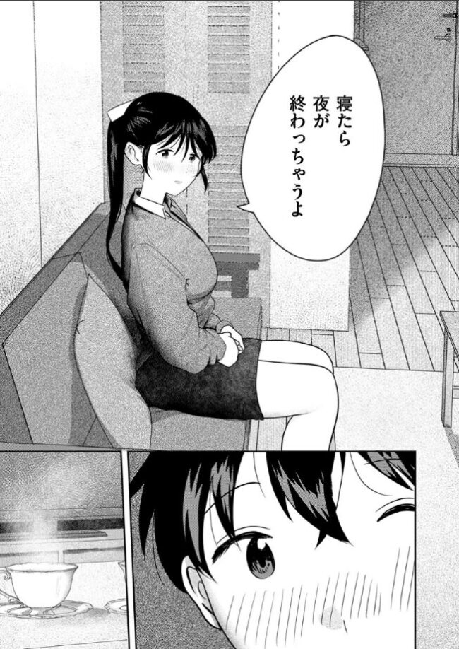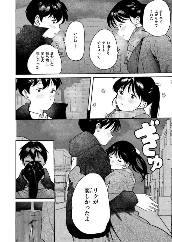 「寝たら夜が終わっちゃうよ」大好きなカノジョ・ミヤビと初めてのお泊まり。でもセックス自体が初めてで、自信が持てない彼氏・リク。ふたりの夜は更けていく。そしてついに、《その時間》がやってくる――