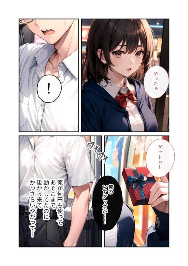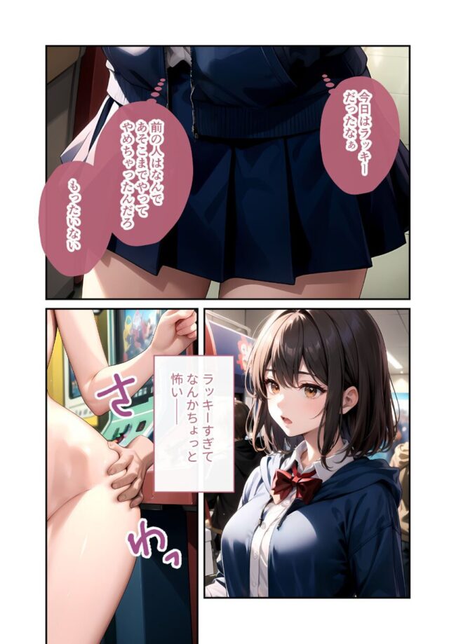 放課後、学校近くのゲームセンターに立ち寄った影山。クレーンゲームでお目当ての景品のゲットまであと一歩のところで小銭が尽きてしまう。両替えをして急いで戻るが、そこには一人の少女の姿が。景品は彼女にあっさりと横取りされてしまった影山は、報復に自分の力を遣うことに。無防備な彼女を後ろから見えない手で捕まえると、他の客の目がある中でも構わず報復を開始。「だめ…だめだめだめ…っ」「イったばっかりなのにそんなにぐりぐりされたらっ」本編49P+AIイラスト130P収録!【注意事項】※本作品のシチュエーションは全てフィクションです。登場する人物や設定等は、すべて架空のものとなります。※この作品内に登場するキャラクターは全員20歳以上です。※本作品はAIによる生成画像を使用して制作しております。※犯罪、その他違法行為を美化または助長する意図はございません。