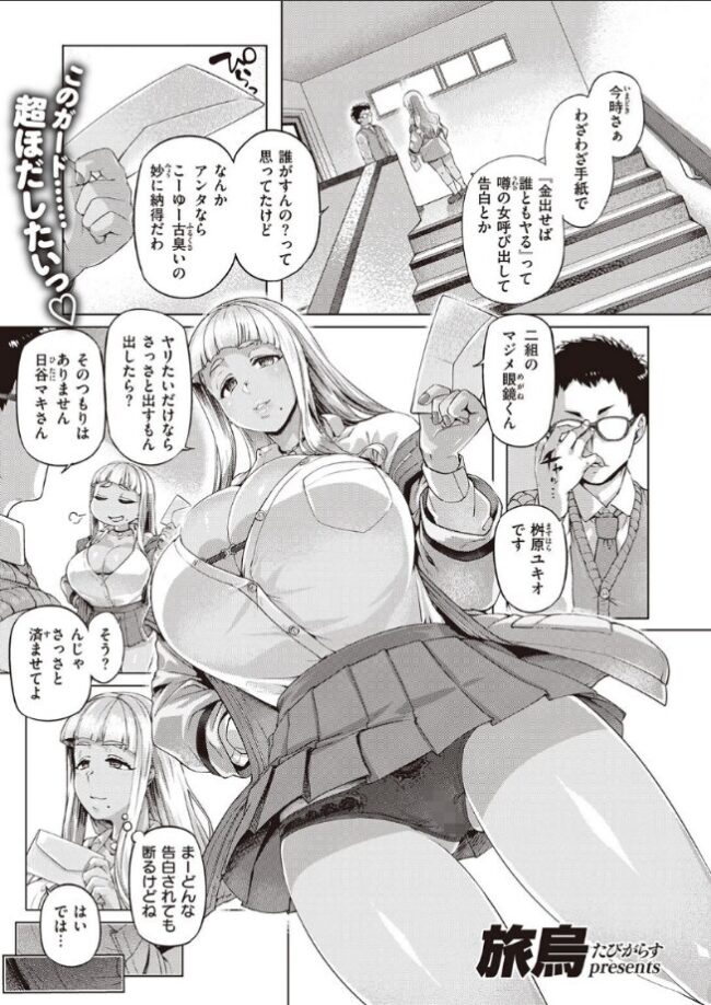 「人気の無いトコ誘ったて事はぁ〜 ヤりたいって事しょ? えへへ…良いよ♪ いーっぱい気持ちよくしたげるね♪」 ≪金出せば誰ともヤる≫と噂の黒ギャルのマキを呼び出したのはマジメ眼鏡男子のユキオ。 だが、ユキオの目的は真剣な告白で……数日後、ユキオにデレまくるマキの姿が!? ギャップが激しいラブラブカップルはSEXも激しめで……♪