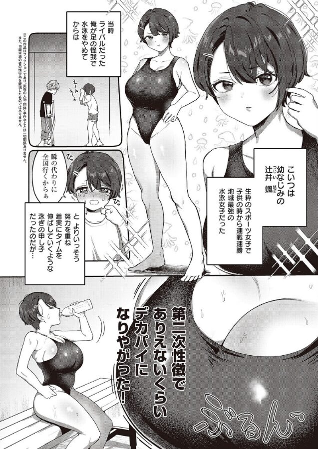 水泳のエース選手・颯のマネージャーとしてサポートする瞬は、最近急成長する彼女のデカパイに悩まされて煩悩MAX状態!?彼女からタイムが伸びないと相談を受け、「特訓」の名目で彼女のデカパイにえっちなマッサージをしてしまう!嘘だとバレたらおしまい…と思いきやまさかの効果抜群!?二人の特訓はどんどんエスカレートしていきーー!爆乳Hの新星・大根ヲロシ先生が描くスポ根あまあまSEX!