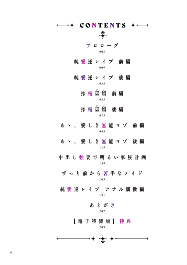 マゾが大好物なおねぇさんに屈服させられる快楽!マゾが大好物なドS女性に自らの性癖を見破られ、調教され、玩具にされる!徹底的に負け癖をつけられてしまったウブな男たちの物語――。ウェブマガジン『comicクリベロン DUMA』に掲載された、女性に屈服させられる快楽がテーマの作品集。短中編5話に加え、「純愛逆レ●プ」続編16ページを描き下ろし収録!逆転なし完全女性上位漫画で熱狂的なファンの支持を集める同人サークル「お口の奥地」主宰の渡薫デビュー単行本です!【電子特装版 描き下ろし漫画8ページ】カルト宗教の女教祖を描いて配信で大人気を集めた「搾精巫娼」のその後の主人公たちの話を収録!!収録作品純愛逆レ●プ 前編純愛逆レ●プ 後編搾精巫娼 前編搾精巫娼 後編あゝ、愛しき無能マゾ 前編あゝ、愛しき無能マゾ 後編中出し強要で明るい家族計画ずっと前から苦手なメイド純愛逆レ●プ アナル調教編【電子特装版】特典 搾精巫娼 特別編