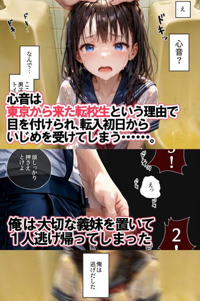 父親の転勤で田舎へ引っ越すことになった兄と義妹の「心音」。転入先は閉鎖的で治安の悪い学園……。心音は‘東京から来た転入生’という理由で転入初日からいじめを受けてしまう。こんな土地で生活はできないと判断した兄と心音はすぐに再び東京へ帰る。祖父母の家で平和な日常を取り戻していたある日、兄の元へ知らない人物からメッセージが届く――「動画売ってやる」悩んだ末、二次被害を恐れた兄は動画を購入してしまう。その動画に映し出されたのは、想像をはるかに超えた壮絶すぎるいじめ……。心音の●●としての、そして人間としての尊厳を徹底的に破壊する●●行為だった。【注意事項】※本作品に登場する人物は全て人工知能(AI)によって生成されたイラストであり、実在しません。※本作品はAI生成画像のため、手足など細かな部分が乱れている場合があります。※本作品に登場する人物は全員20歳以上です。※本作品はAIによる生成画像を使用して制作しております。※犯罪、その他違法行為を美化または助長する意図はございません。※本作品は、原作の本文・画像等を、権利者様から許諾を頂いております。(C)ラビットフット/愛・筋肉博逃げてもいいんだよ 完全版—