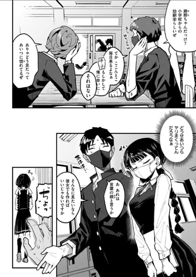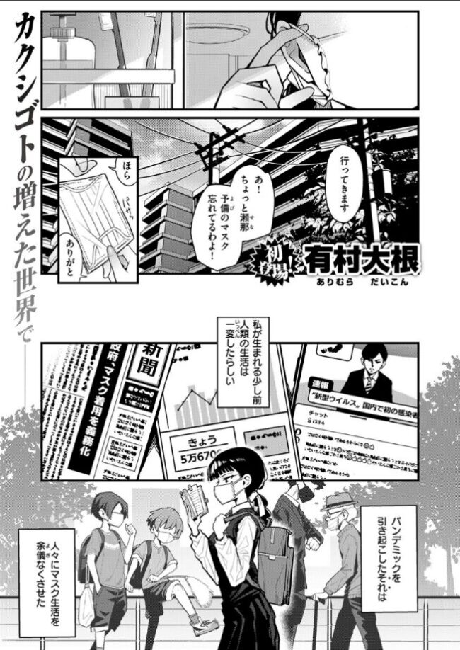 「もう少し優しくできないんですか? 下手くそ」パンデミックにより、人々がマスク生活を余儀なくされ数十年が経った世界。マスクに覆い隠された口元は、性器に等しいデリケートゾーンとなっていた――アイドルの《口バレ》動画で盛り上がるクラスメイトたち。つい幼馴染の瀬那(せな)の口なら見たいと口を滑らせてしまったセンパイは、怒った彼女を追いかけ空き教室へ。なんとか謝ろうとしていると、瀬那はマスクを外していて……?お互い口を見せ合うことになった二人は、そのままキスを交わす。それはこの世界では《その先》も許すことを意味していて……。