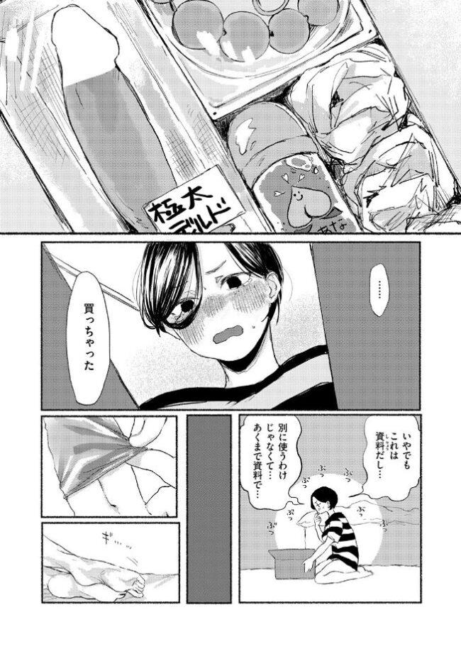 BL同人作家の原田(はらだ)は作品の評判に苦悩中。アシスタントの堀(ほり)くん曰く「リアリティが足りない」ということで、堀くんの尻を借りて実践……というわけにはいかず、こっそりアナニーを試してみることに。最初はピンと来なかったものの、日を追うごとに慣れていき特大ディルドやアナルビーズも使いだすまでに。アナニーの快感にも目覚めた頃、気づけば堀くんのことをオカズにしていて……。