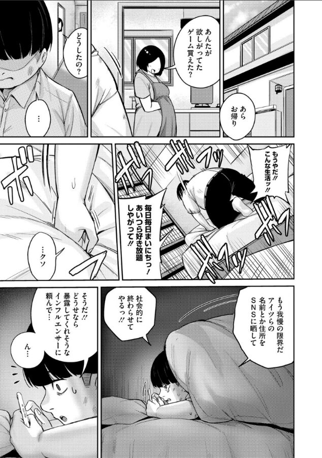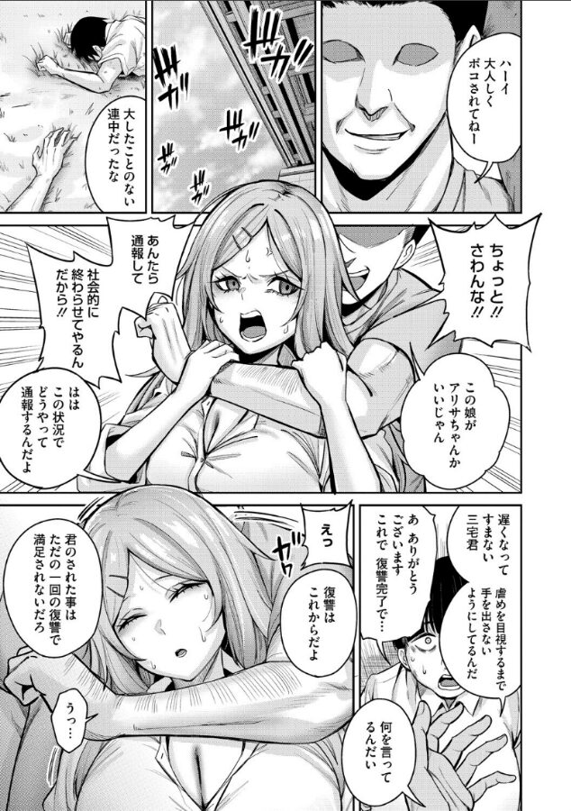 毎日毎日、不良にイジメられている三宅……。中でも、グループの中心にいるアリサからは因縁を付けられお金を巻き上げられていた。イジメてくる奴らに復讐をしようとスマホで調べてみると、怪しい業者『復讐代行モーイク』のサイトで手が止まった。恐る恐る依頼をしてみると屈強な男たちがイジメグループにボコっと復讐! そしてアリサにも全ての穴を埋めるお仕置きレ〇プが始まった……♪