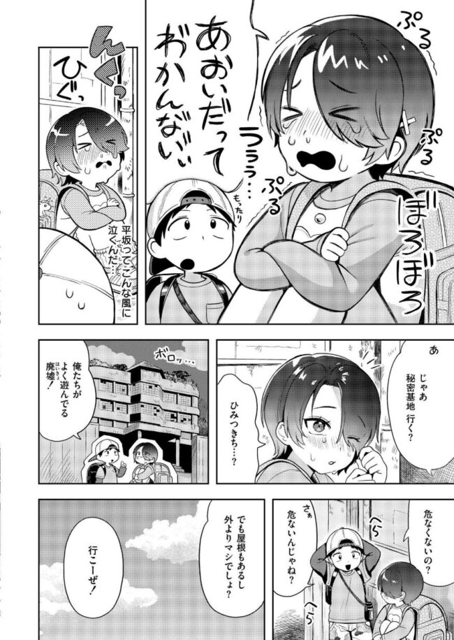 家から出てきた理由を答えてくれない女の子を自分の秘密基地に連れ込みます。そこで、彼女が隠し持っていたエロ本を発見。その理由がエロ本をもとに母親と喧嘩したことがバレますw