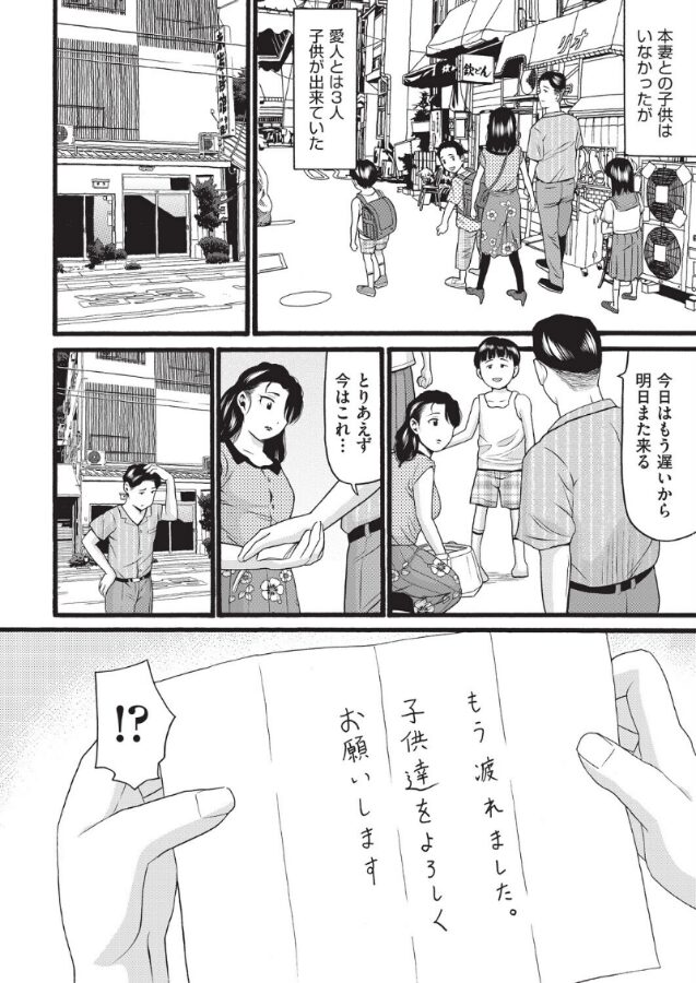 愛人が3人の子供をつれて家にきた。そして子供の母親は本妻に子供を押し付けて蒸発していなくなった。悩んだげく3人の子供を遠くへ連れ出し、一人、また一人と見知らぬ土地へ置き去りにしてゆく…。最後に自分の番だと悟った麗子は何でもするからと泣きついてなんとか父に気に入られようと蒸発した母の真似をして父と近親相姦セックスへと堕ちてゆく…