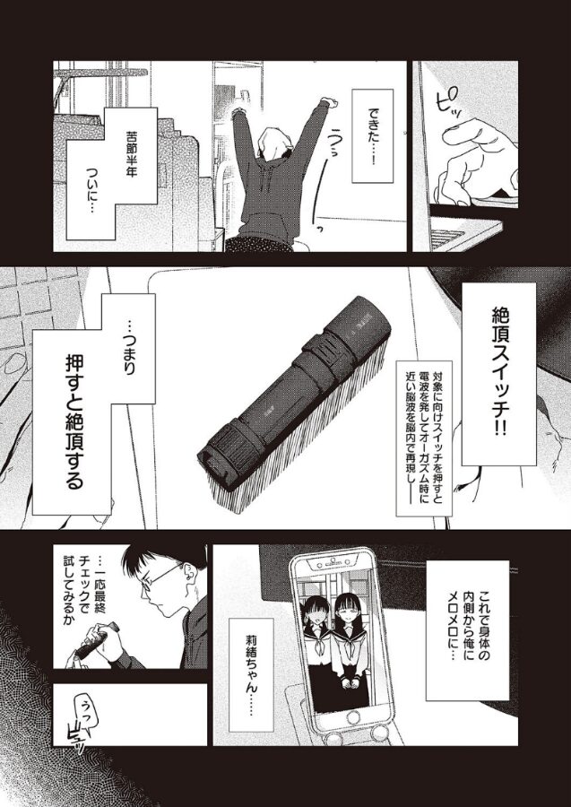ずっと前から好きだった幼馴染・莉緒ちゃんに野球部の彼氏が出来た。僕のほうが絶対に莉緒ちゃんを幸せにできることを理解らせるため、僕はその日から努力を重ねて『絶頂スイッチ』を開発する。『絶頂スイッチ』のせいで僕と目が合うたびにイッてしまう莉緒ちゃんは、ついに「あんたのせいで身体めちゃくちゃなんだけど!」と迫ってくるが――!?新感覚の純愛エロ・京のごはん先生が描く、陰キャくんの愛ある寝取りSEX♪