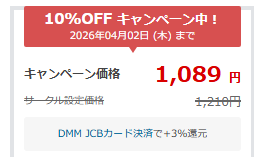 | 10%OFF キャンペーン(04月02日まで) | 1,210円 ➡ 1,089円 |