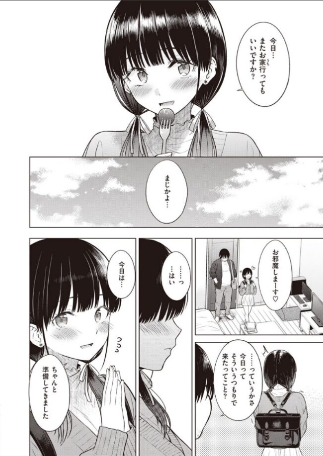 「今日は…ちゃんと準備してきました」面識のない新入生・あかりに告白された織部(おりべ)。こんな可愛い女が冴えない自分を好きになるわけがないと、ちょっと脅かそうとして押し倒すも自分が勃たなくて惨めになる始末。そんなことがあったにも関わらず、今日も家に来たあかりは新しい下着をつけてきたと言い出して……。