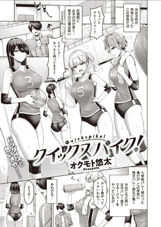 「実物ならもっと興奮したりする?」元女子校で女子ばかりの学校には男子バレー部がなく、仕方なく女子バレー部のマネージャーになった及川(おいかわ)君。女子部員達にコキ使われるなか、キャプテンの愛華(あいか)だけは優しくしてくれる。その上、練習中に偶然撮ってしまった愛華のムッチリお尻の画像を≪使っていいよ≫と囁かれ……更に生尻を差し出した彼女から大胆な提案が!?