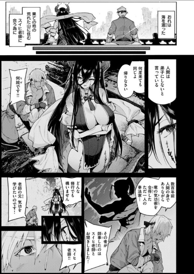 「今のままでは貴方は…ただの獣よ」幻の気功術を修めるべく女竜人スイヒ老師の下、人間であるハセ・ランドルフは3年間の修行に耐える。彼女に認められたハセは《適合》と呼ばれる次の段階の修行に進むが、その内容は性器を通じてお互いの気功を混じり合わせ、竜人の強力な気功を得ることだという。しかし3年もの間、女を絶っていたハセは己を律することができず……!?