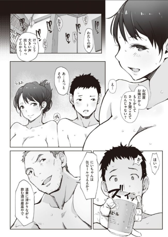 彼女との温泉旅行のハズが、気になるのは旅館の隣室の美女・もみじのことばかり。男湯で悶々としているところに、突然もみじが男を連れて乱入。熟れたカラダを恥ずかし気もなく見せつけられてしまい……。