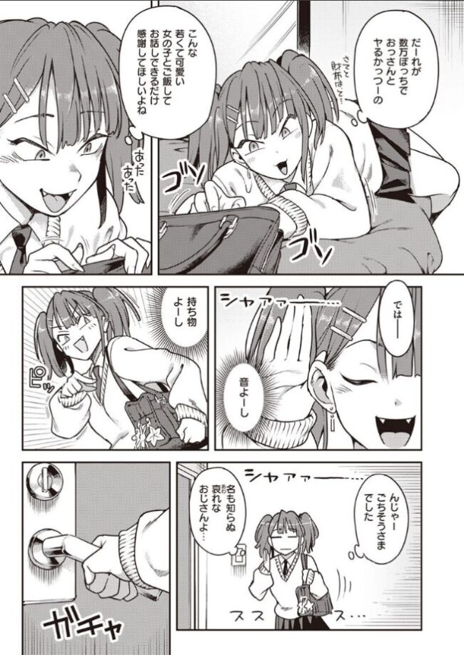 「もう許してぇ……謝るから……もうしないからぁ……」オトナ有のP活で冴えないおじさんを誘いお小遣いを稼いでいるナマイキ女子の紗江(さえ)ちゃん。今日会ったチョロそうなおじさんも、お財布を盗って逃げるつもりだったのだが……?おしおきのねっとりタッチで焦らされ、ワカラセられ、正直なメスに開発されてしまう!!