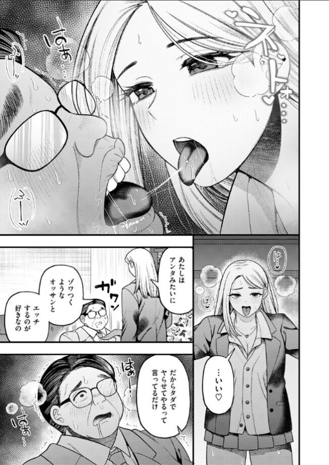 「私とセックスしろって言ってんの」どう見ても冴えないフツーのオジサンにそう迫っているのは……めちゃくちゃ可愛くておっぱいの大きい金髪制服ギャル!?普通に考えたら美人局やおとり捜査を疑うところだが、全然そんなこともなく……本当にオジサンとエッチがしたいだけなのだった!!馬乗りフェラでビショビショになったアソコに中年チ○ポをナマ挿入、からの鬼ピストン!本気で感じるギャルちゃんにそのまま――