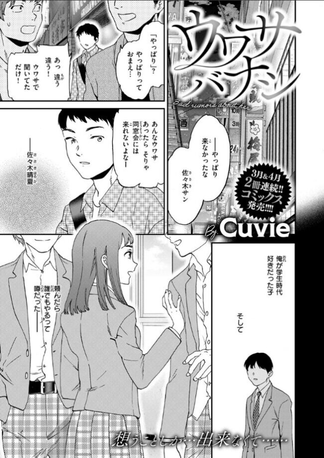 「――寺谷(てらたに)くんとは ヤリそこなったもんね」同窓会帰り、会を欠席していた同級生・佐々木晴夏(ささき はるか)の噂に。学生時代、頼んだら誰でもヤるって噂だった彼女。そんな佐々木さんと偶然、再会。彼女は夜のコンビニでバイトをしていた。一緒に帰ることになり、同窓会にはバイトで来れなかったんだねと言うと、彼女から一言。「ウワサ、聞いてないの?」そのままホテルへ流れて、全裸の彼女が迫ってきて――