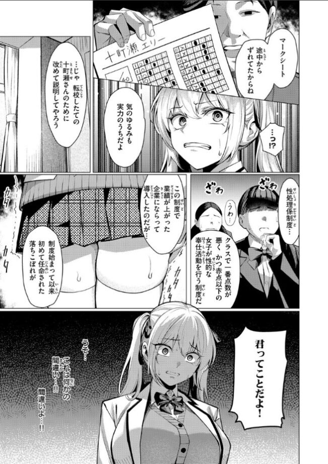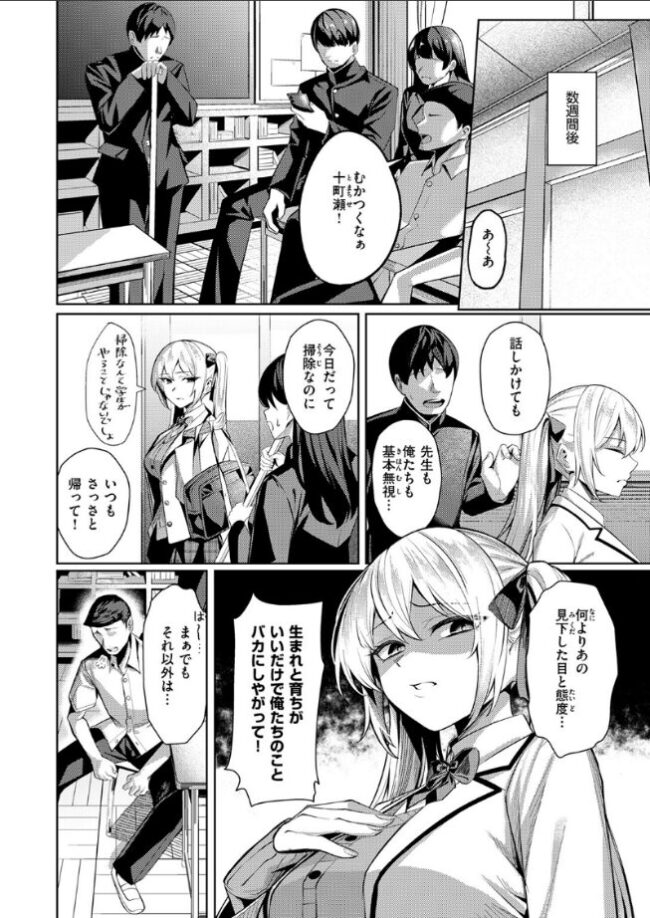 「私 貴方たちなんかと仲良くする気ないから」父の会社の経営悪化により、超お嬢様学校から転校してきた十町瀬(とまちせ)エリー。才色兼備な彼女に対し、歓迎ムードの生徒たち。それにも関わらず、プライドの高さからエリーは周囲に冷たく当たってしまう。当然周りの反応も変わってきて……。「十町瀬 嵌めない?」放課後、とある男子生徒が発言したことから、テストの結果を細工し《性処理係制度》を利用してエリーを嵌めることに成功。《男女問わず求められたことには必ず応じなくてはならない》という性処理係のルールの元、バニーガールの衣装を着せられ、バイブを仕込まれ、クラスメイトに囲まれ……プライドも身体もめちゃめちゃに……!!