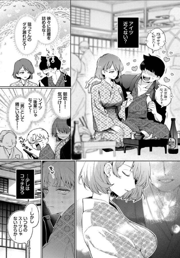 巨乳大好きマン社員旅行でヒロインの朝吹に近づこうとする後輩君。