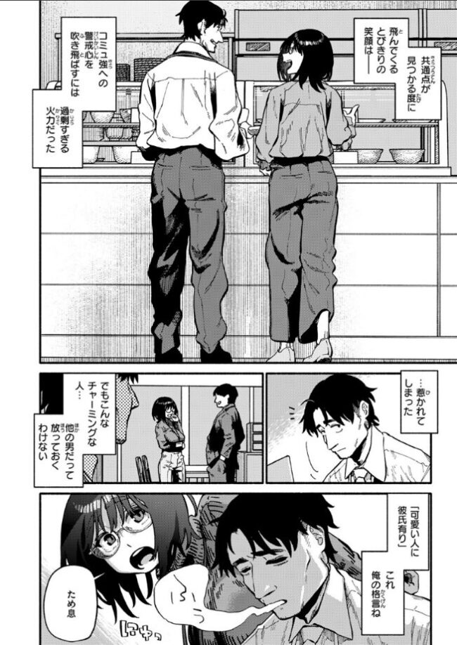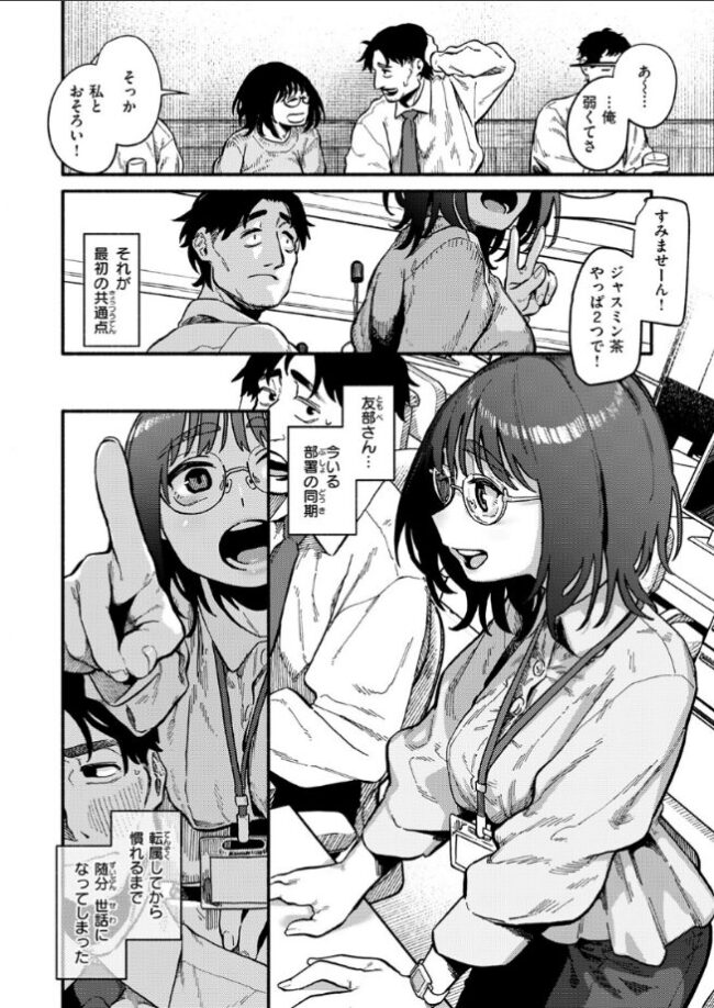 「ヨユーないし、がっついちゃうし…ごめん。下品な女だって引かないで――」とびきりの笑顔を向けてくれるコミュ強な同僚の友部(ともべ)さんに、年甲斐もなく惹かれている俺。だがそこは色々とわきまえている。こんなチャーミングな人、他の男だって放っておくわけない。諦めもつかずため息をついていたある日、彼女から飯のお誘いが……!?サシ飲みの緊張も《おそろい》な部分が見つかるたびに少しずつほぐれていく。気付けば友部さんが目の前で酔っていて、隙だらけ。ふと目が合ったとき、考えてることは一緒だったみたいで……?乳輪デカめ・性欲強めなメガネ美女とコンプレックスさらし合う激情えっち♪