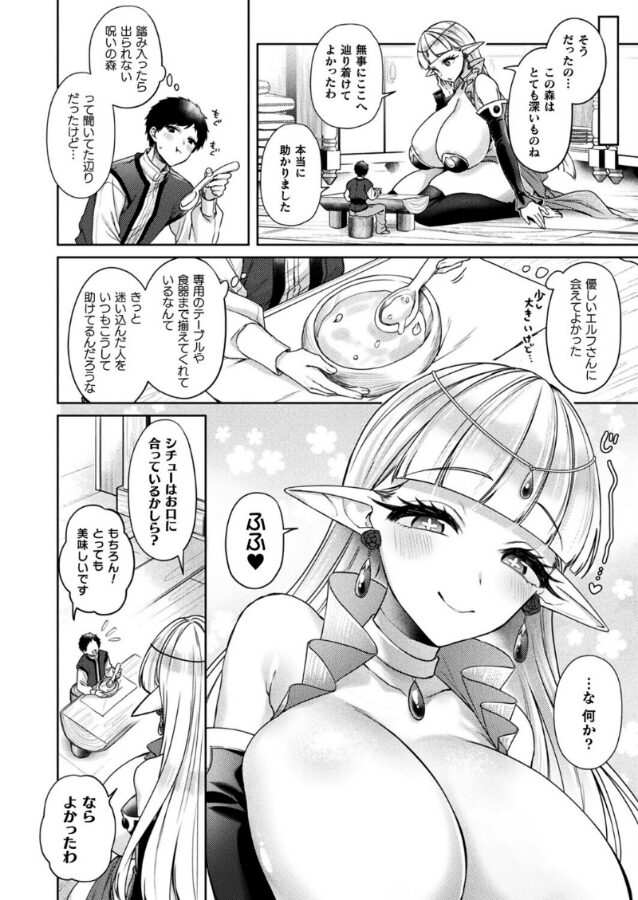 巨女エルフの淫らなお人形遊びで玩具のように弄ばれる!森で遭難してしまった青年は巨大な館へたどり着き、そこに住む巨女エルフから特製のシチューを振る舞われるが気を失ってしまう。エルフによって館のとある一室へ運ばれている最中に目を覚ます青年だが、数多の生きた人間をまるで人形のように飾っている異様な部屋の様子を目の当たりにし戦慄する。エルフは自らをママと呼称し、彼らをお友達だと言って紹介しつつ指先で青年の身体を、敏感な乳首を執拗に弄び、フェラで青年のチンポを咥えて無理矢理射精させる。そして、エルフはお友達と仲良くなりましょうと言い、棚に飾っていたお気に入りである1人の女人形を取り出すと……。