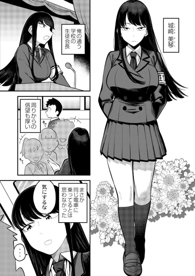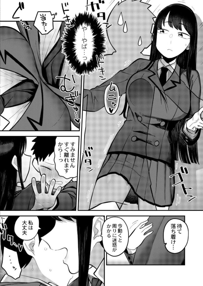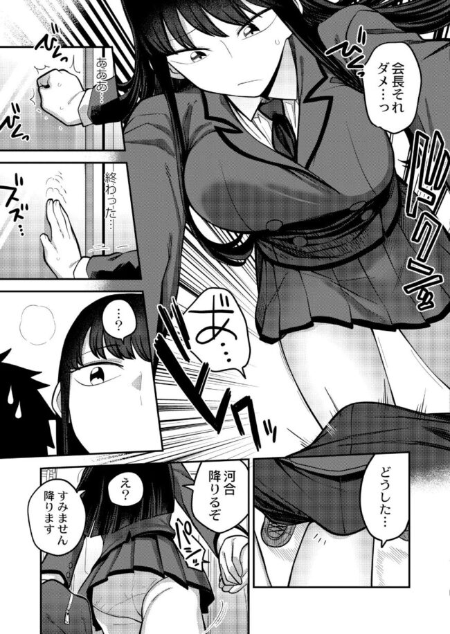 満員電車で気になるあの人と一触即発、勃起寸前◆河合は通学電車で生徒会長の城崎美琴と鉢合わせる。ラッシュ時ということもあって車内はぎゅうぎゅう詰め。河合のきわどい部分が美琴の太ももに当たってしまい…。エモさとユーモアを兼ね備えたエビフライ定食先生の真骨頂が光るシチュエーション作品!