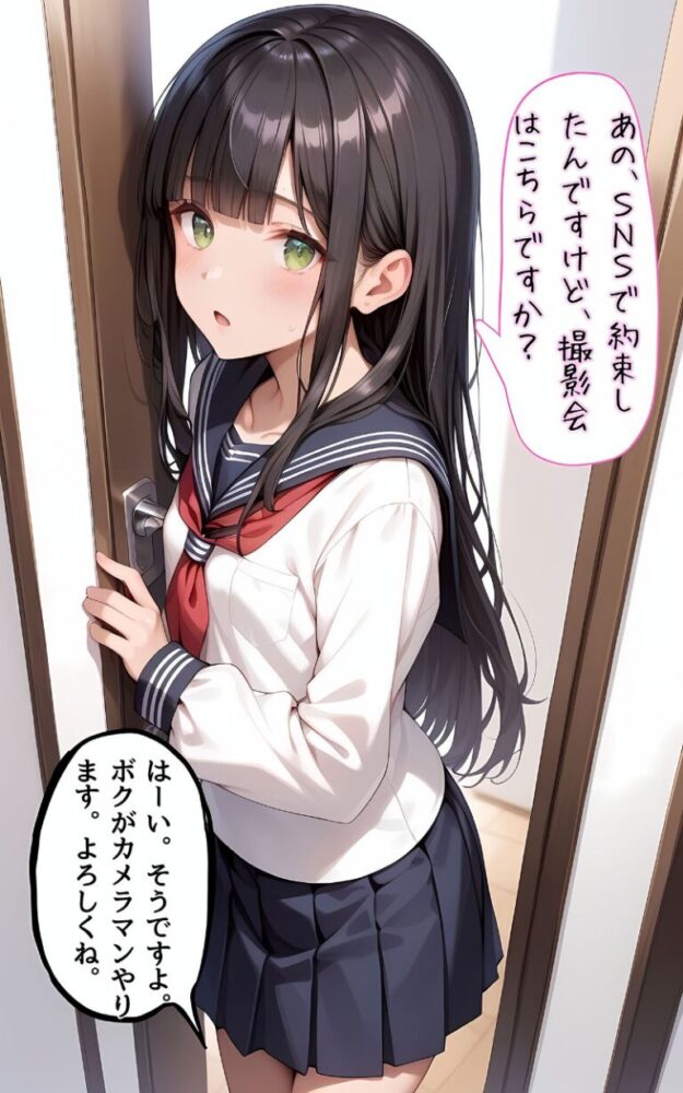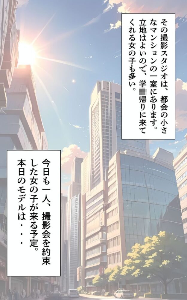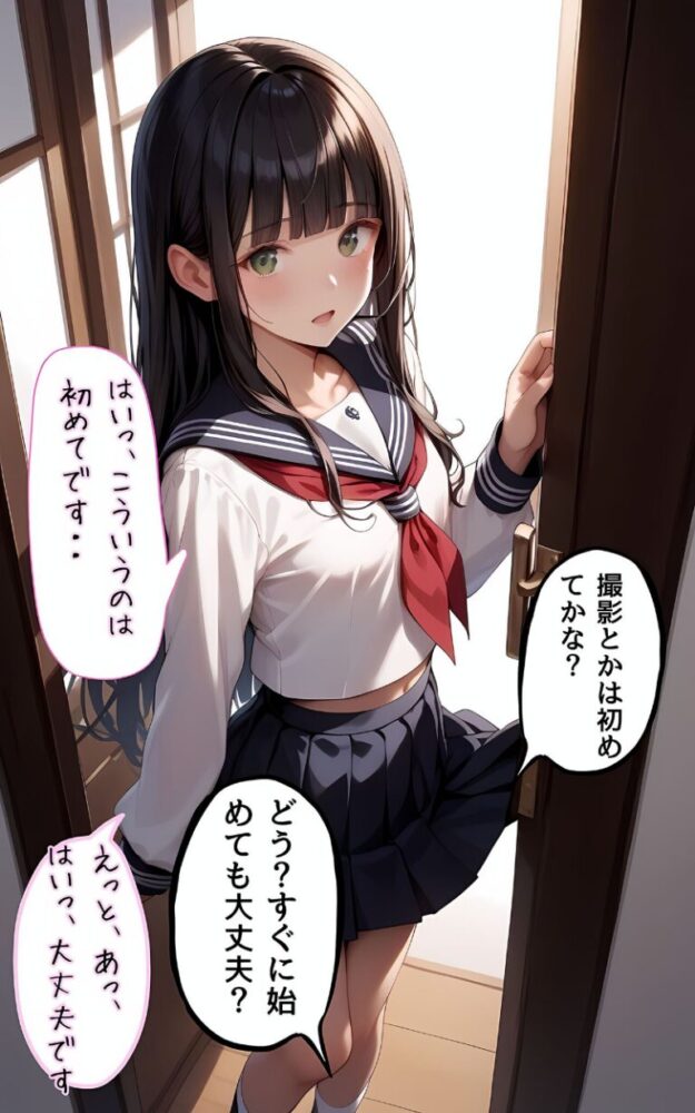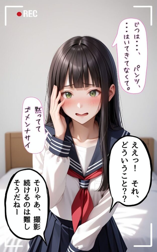 パンチラ撮影会にやってきた美少女はシオリックマこと本名は「安城しおり」黒いストレートヘアがよく似合うとってもスレンダーな女の子だ。あいさつもそこそこに撮影を始めたが、誰でもそうだが表情が固い。とはいいつつも枚数をかさねるごとに彼女も自然な笑顔になっていった。そしてぱんちら撮影を開始しようと声をかけると、彼女の様子がおかしいまたか…。少しだけそんな考えが頭をよぎったが、答えは全く違っていた「パンツ、はいてきてません」耳を疑うような少女の言葉に一瞬言葉を失う。なんと、忘れたのではなくわざとはいてこなかったという、照れた表情でうつむく少女どういうことかよくわからないが、ぱんちら通り越してまんちらは難しいかなと思い、こちらから撮影中止をもちかけたところ、彼女は首を横に振った。「わたしのおま〇こ、撮ってください」【注意事項】※本作品に登場する人物は全て人工知能(AI)によって生成されたイラストであり、実在しません。※本作品はAI生成画像のため、手足など細かな部分が乱れている場合があります。※本作品に登場する人物は全員20歳以上です。※犯罪、その他違法行為を美化または助長する意図はございません。※本作品は、原作の本文・画像等を、権利者様から許諾を頂いております。(C)ラビットフット/メコ神ぱんちら撮影会のはずが、いつのまにかおじさんち〇ぽに沼る話4