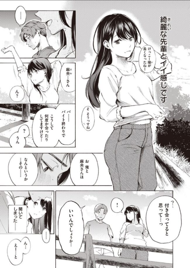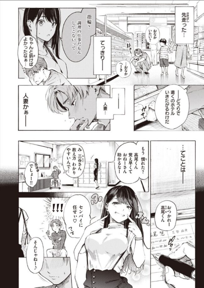 黒髪ロングの年上美女・麻央(まお)さんに精を搾られまくりの大学生・高尾(たかお)。バイト先で知り合った彼女とは既に男女の仲なのに、まだはっきりしない関係……。しかし、今日こそは付き合っている確信が欲しいと、勇気を出して麻央さんに確認してみることに。「私 結婚してるけど?」……付き合う以前に……まさかの人妻!? ショックは受けたものの、《他人のモノ》と意識するほど背徳感も相まってエロく思えてしまう高尾。でも、興奮しているのは麻央さんも同じで……♪