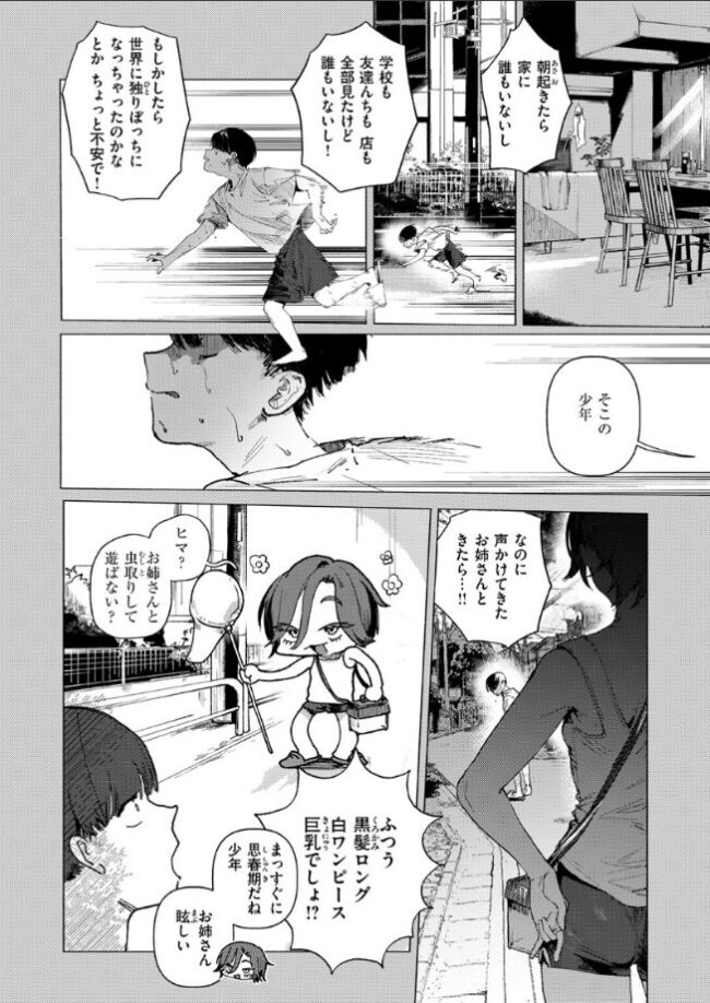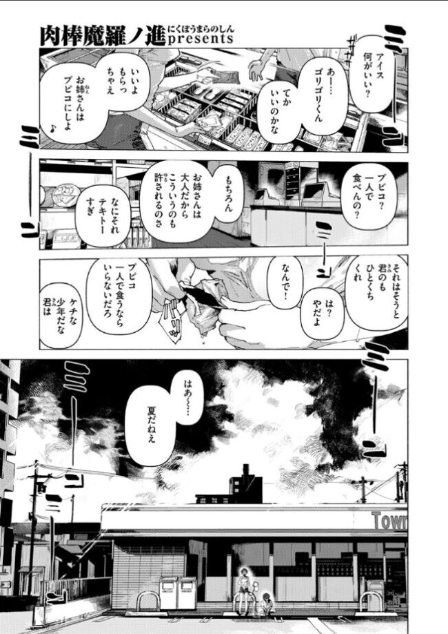 夏休みの最終日。街で出会ったどこかズレているお姉さんと、虫取りしたり、ゲームしたり、海で遊んだり……そんな日が、毎日続いていく。夏休みの最終日。海で一緒に遊んでいたお姉さんは、パンツを穿いていなかった。おま○こを近くで見せてくれて、触らせてくれて……。はじめてのセックスもさせてもらった。「少年、君にとっておきの経験をあげよう」「これもひと夏の思い出ってやつさ」