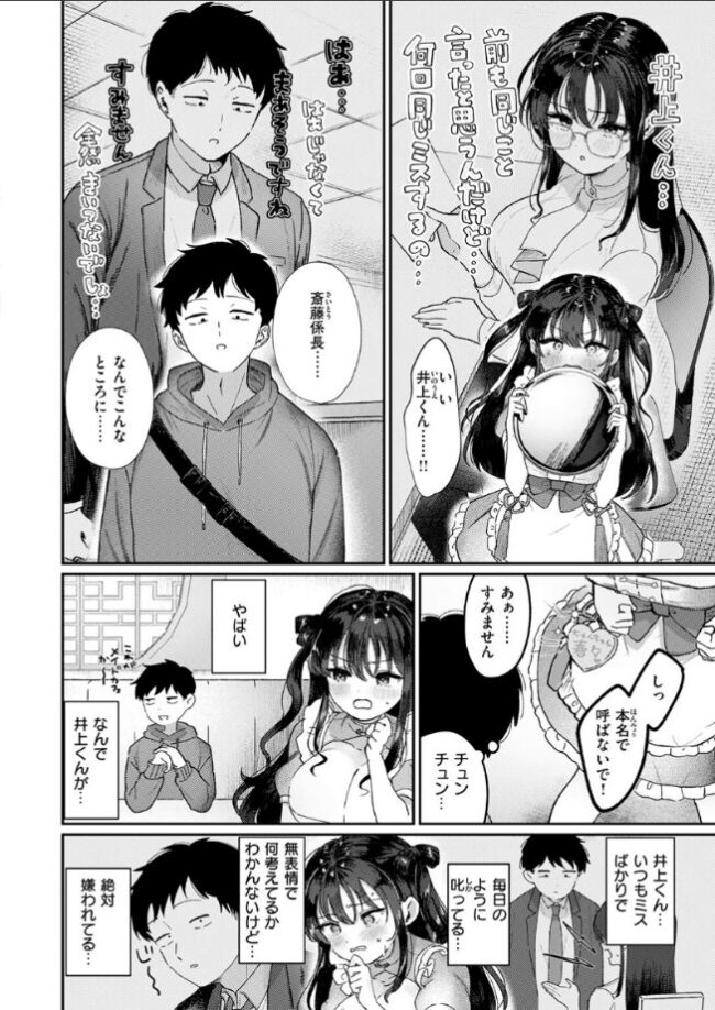 会社に内緒で働いているチャイナ系メイドカフェ。可愛いものが大好きな私の居場所だったのに……会社の後輩(しかもなんか嫌われてそう)が来てしまった!?いつもの仏頂面でオムライスを注文したり……チェキを30枚も撮っていったり……。どういうつもりかわからないけど、大切な居場所を守るためなら……《最終手段》に出るしかない!?