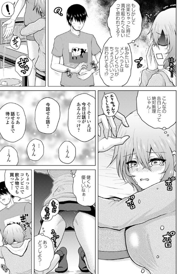 奇妙っぽい冒険が大好物な新鋭・肉メンが新たな快楽への道を誘う!?格ゲーヒロイン好き男子×レイヤー女子の濃密エロコメ第七話!!人気対戦格闘ゲームにハマっている高橋健人(たかはし けんと)は、とある即売会で記念本を買えてホクホクで歩いていると、推しキャラであるカーマイン様のコスプレイヤーを発見するッ!撮影をお願いするとそのレイヤーさんは、カーマイン様が勝った時のセリフと胸元を寄せる特徴的なポーズをキめるとても神経質な性格を持った人で、満足してお礼を言い帰ろうとすると不意に呼び止められる。なんと、声をかけたレイヤーさんは健人の実家の隣に住んでおり、昔一緒に格闘ゲームで遊んでいた幼なじみの岡田(おかだ)エリお姉ちゃんだった。イベント後、ゲーム機が置いてあるラブホで久し振りに対戦プレイをするはずが、いい雰囲気になった事で二人は対面プレイをする関係に。その後イベントでエリのエロ師匠となる清原咲希子(きよはら さきこ)を紹介され、彼女の願望を叶えるため流れで3Pをしてしまう。エリとエッチ出来てテンション上がった咲希子に「今度おっぱいでエッチな事してあげてもいい」と言われ真に受けた健人は、流れで支援サイト用のファン向け動画撮影を手伝う。そして撮影会も無事に終わり二人で帰る道すがら、偶然妹と歩いてたエリと遭遇する。咲希子は健人に撮影会の手伝いをしてもらっていたと説明するが、エリは流れを察してなんだか変な雰囲気になってしまう。帰宅後メンヘラモードが発動したエリ。二人の関係を怪しみ友人の裏垢仲間に相談し、思い切って告白するため健人を家に呼び出す。しかし健人が家を訪ねると、エリは●っ払い状態で健人を出迎える事に。一体なぜ?果たしてエリの告白は成功するのか…。